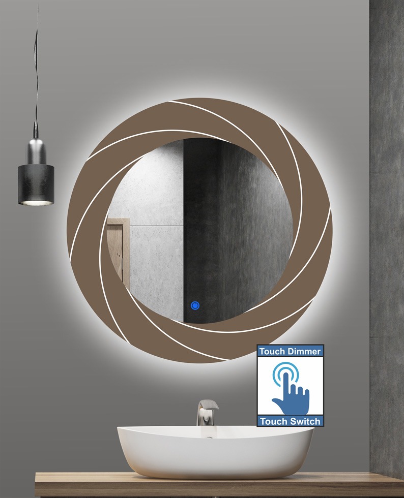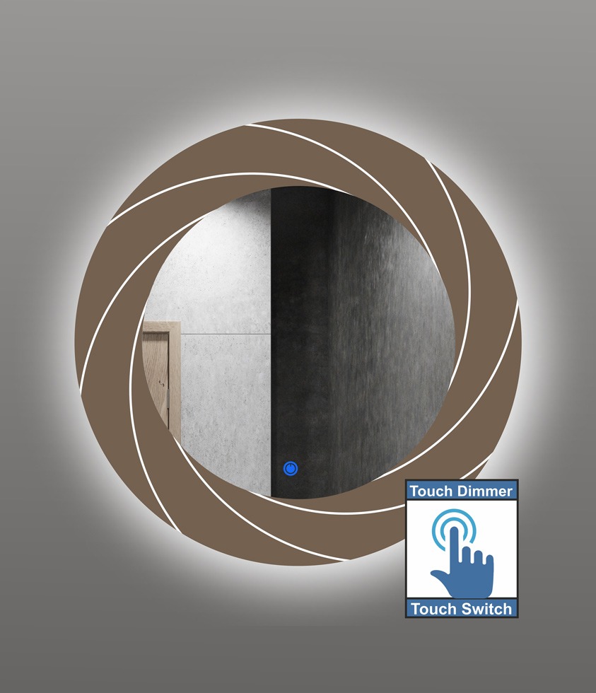 Round mirror with digital printing technology in blue design all around and led lighting with on / off touch switch with dimmer.