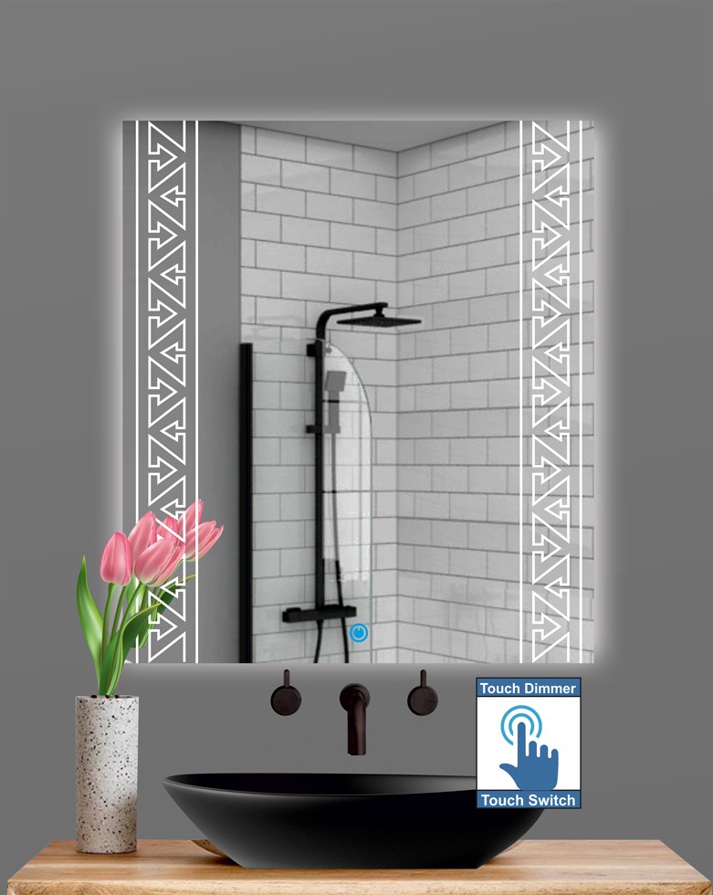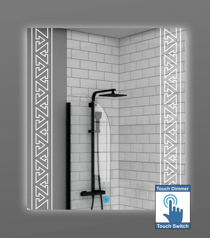 Καθρέπτης μπάνιου με σχέδιο αμμοβολής και φωτισμό led με διακόπτη on/off τεχνολογία αφής με dimmer για ρύθμιση της φωτεινότητας