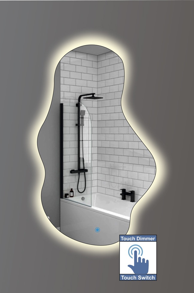 Καθρέπτης μπάνιου κρεμαστός σε σχήμα βότσαλο Νο4 με κρυφό φωτισμό led και διακόπτη on/off με τεχνολογία αφής και dimmer για ρύθμιση της φωτεινότητας.