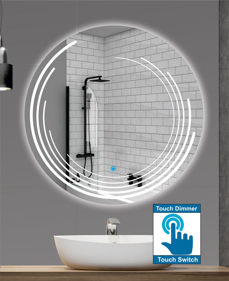 Καθρέπτης μπάνιου στρογγυλός με σχέδιο αμμοβολής περιμετρικά και led φωτισμό με διακόπτη on/off με τεχνολογία αφής με dimmer