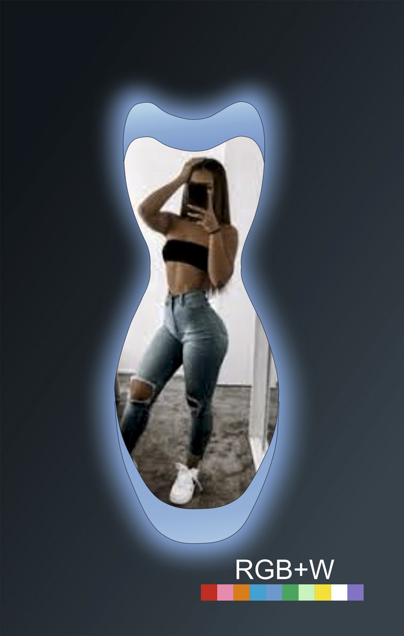 Διακοσμητικός καθρέπτης τοίχου shilouette No5 με επιλογή επιθυμητών διαστάσεων και φωτισμού Led, θερμό, ψυχρό, φυσικό φως ημέρας ή RGB με τηλεχειρισμό(πολλών χρωμάτων) καθώς και διακόπτη αφής με dimmer για ρύθμιση της φωτεινότητας.