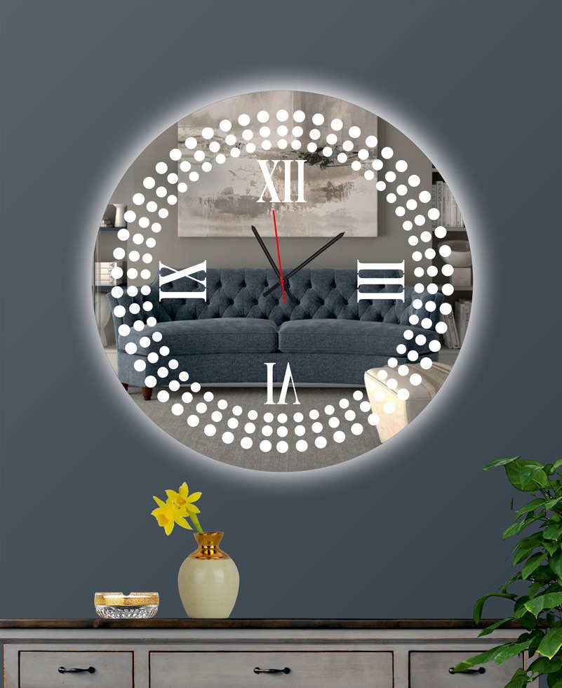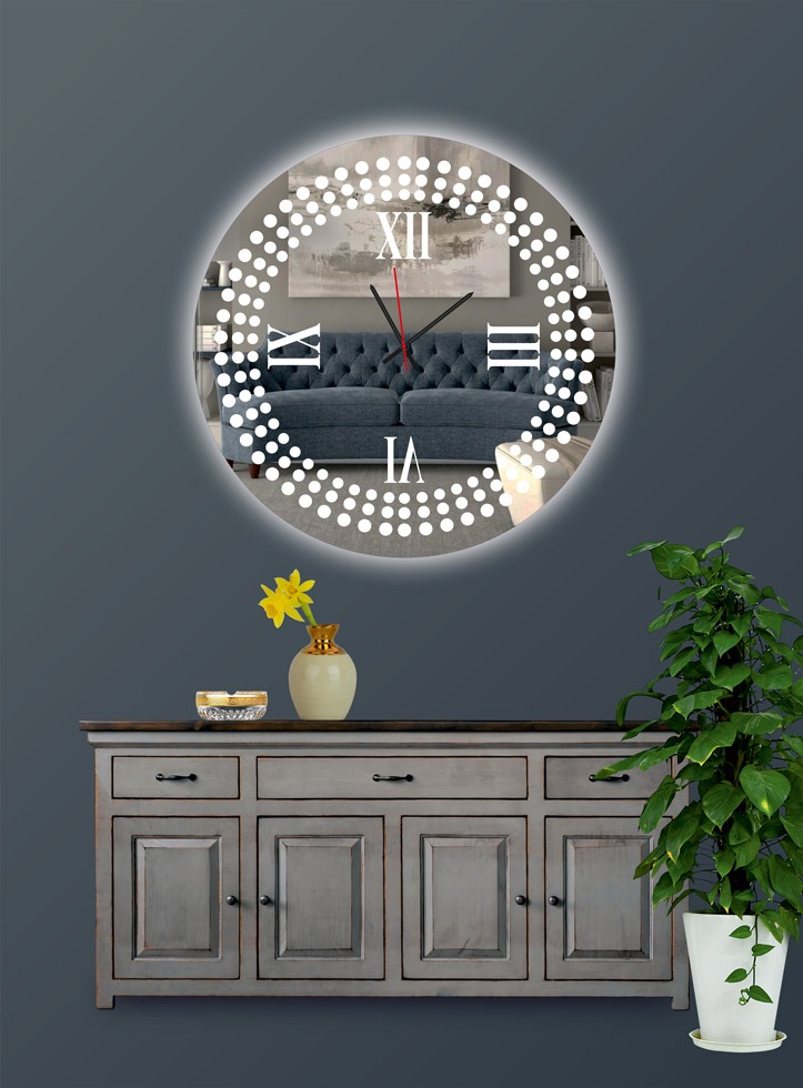 Ρολόι τοίχου στρογγυλό με καθρέπτη led φωτισμό και σχέδιο αμμοβολής